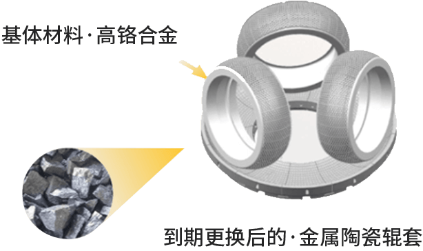 - 傳統堆焊/高鉻輥套HV硬度普遍約為650,而陶瓷合金HV硬度可達1850-2100,新材料帶來傳統材料的2.0-3.0倍的使用壽命.更長的單次使用周期,為企業減少停機、拆卸、人工、耗材、配件等維護成本。